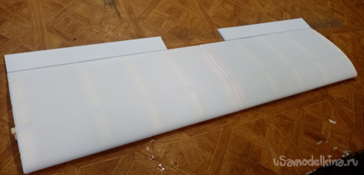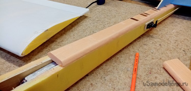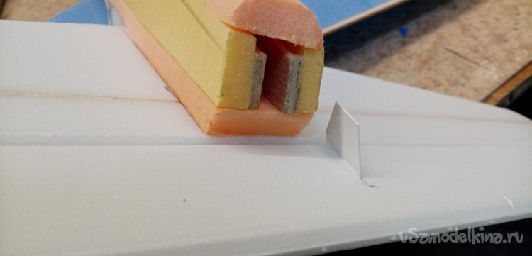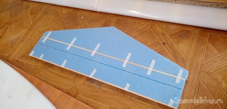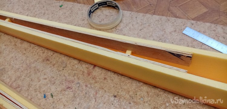 Так же рейку усиления приклеиваю на переднюю кромку руля направления. И на вариант из двойной потолочки.