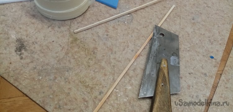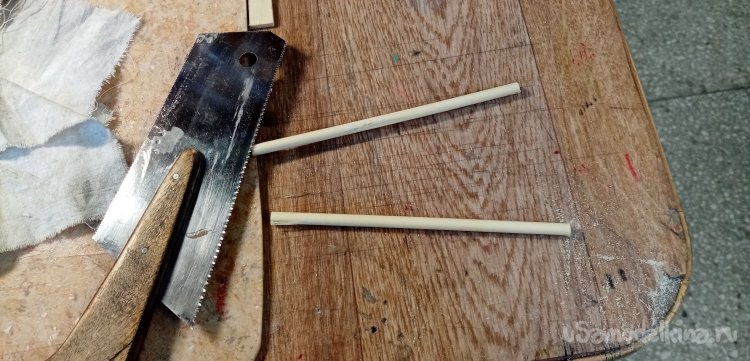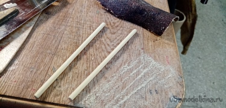 Отпиливаю при помощи самодельной пилки, нужный размер. Немного шкуркой, закруглит торцы и по поверхности пройтись.