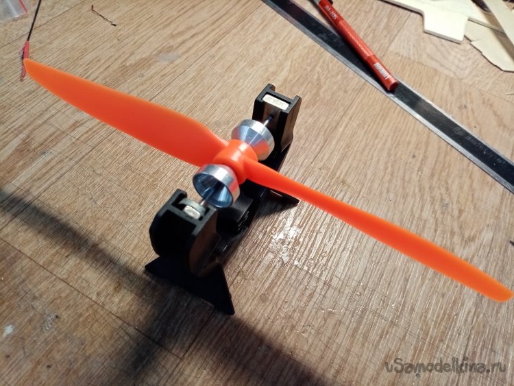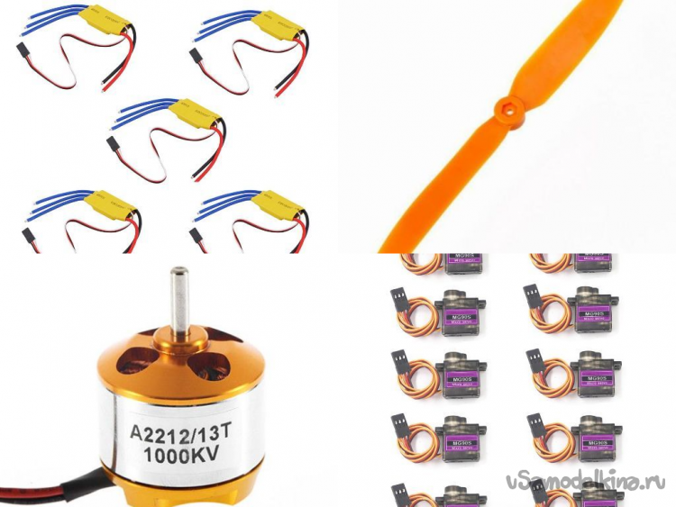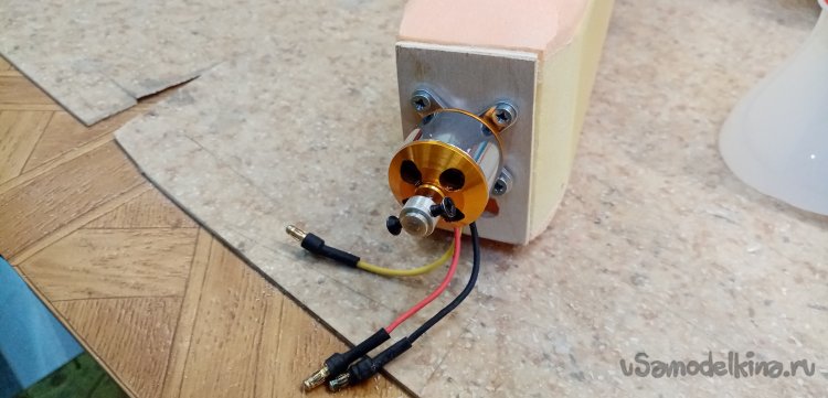На мотораму нужно установить мотор и на хвостовую часть сервопривод руля высоты.