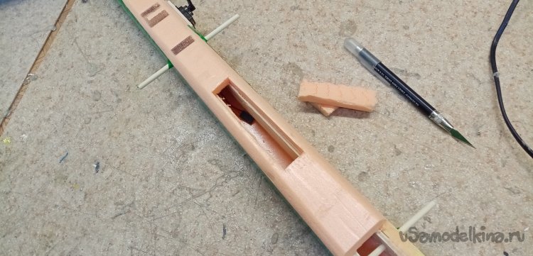 На высохшем фюзеляже срезаю боковые грани и зашлифовываю для лучшего обтекания.