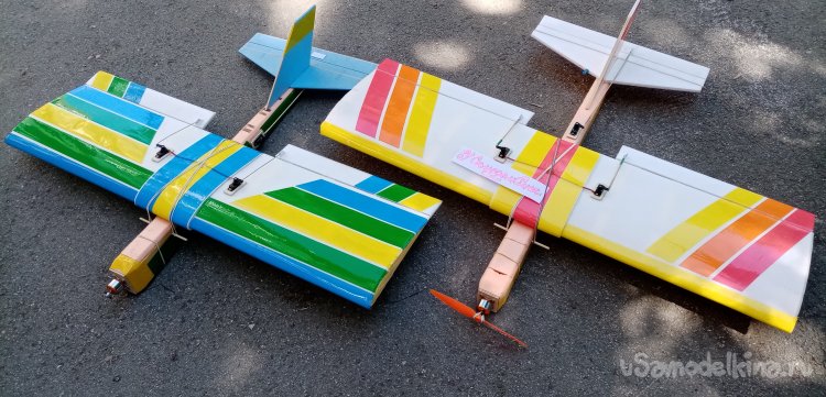Крыло достаточно толстого профиля размахом в 100мм. Крепится сверху фюзеляжа на резинках, для сохранности при грубых посадках. Управление элеронами на двух сервоприводах. Фюзеляж простой четырехгранной конструкции с внутренними усилениями из фруктовой фанеры. Руля направления нет. Только руль высоты. Управление сводится на 4 канала. Два на элероны, один на руль высоты и газ. В полете задействован только правый стик передатчика в режиме «мода один» как на бойцовом крыле.