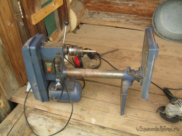 Фото 2. Положение сверлильного станка при импровизированном точении. Обороты максимальные – около 3000 об/мин.