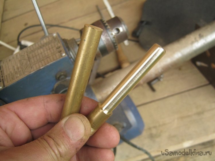 Фото 4. Одна из заготовок проточена и отшлифована. Четкую ступенечку удалось сделать квадратным напильником с некрупной насечкой.