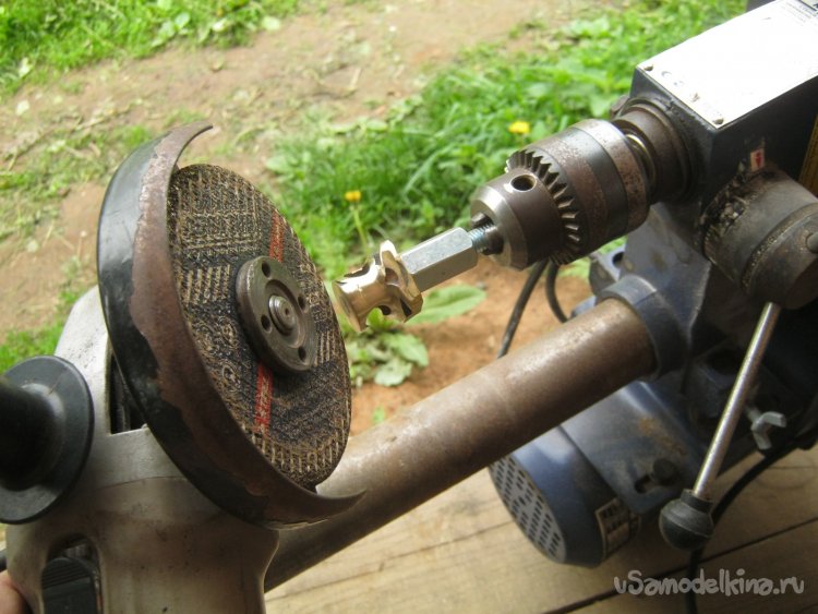 Фото 9. Импровизированное точение, аналогичное стержню. Чтобы не портить хороший болт, для оснастки подобрал обрезок шпильки.