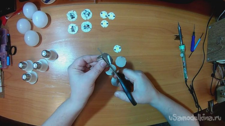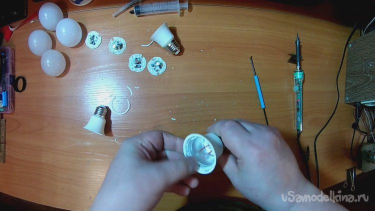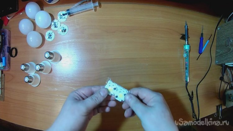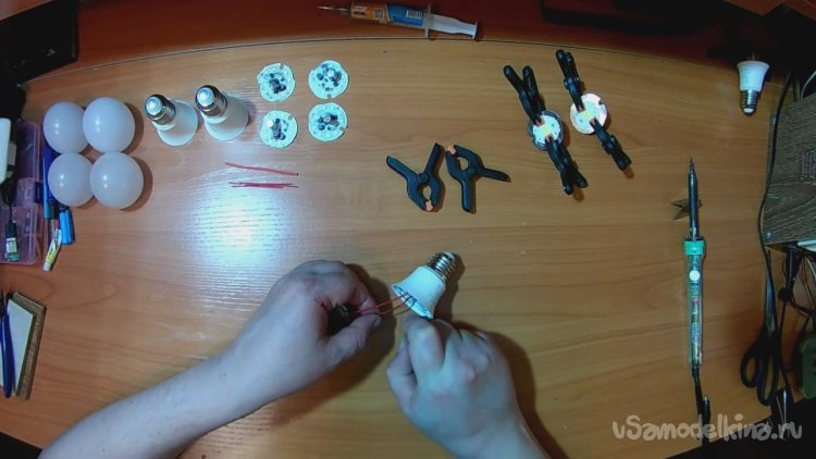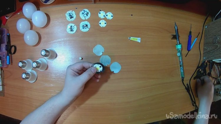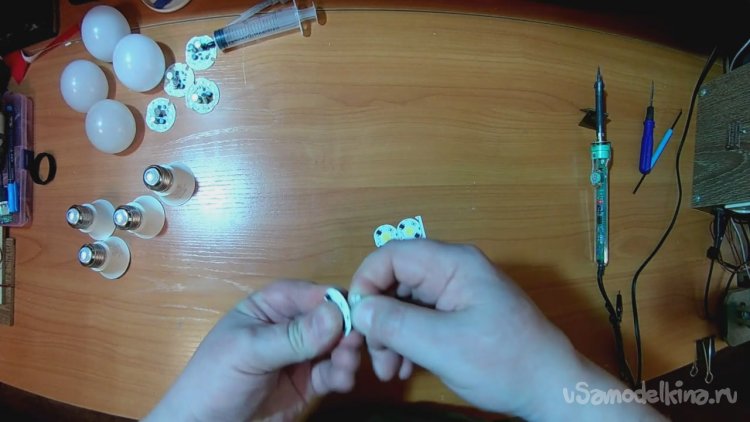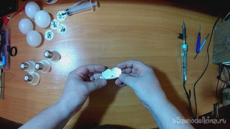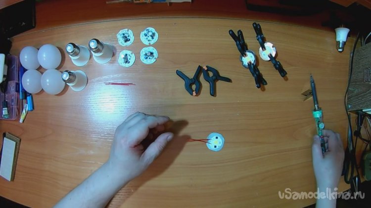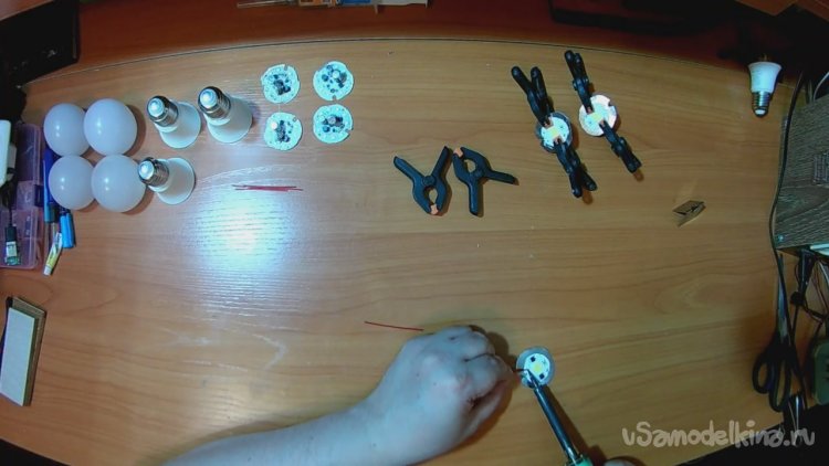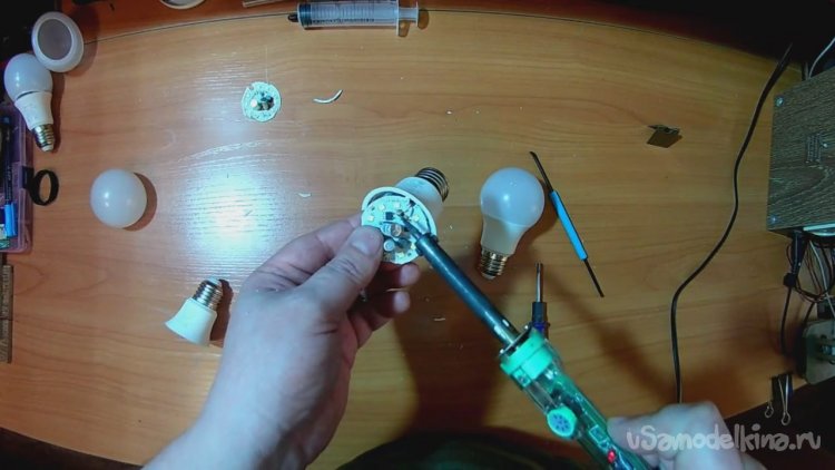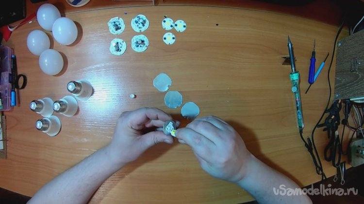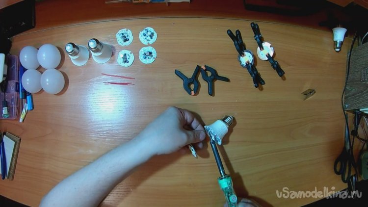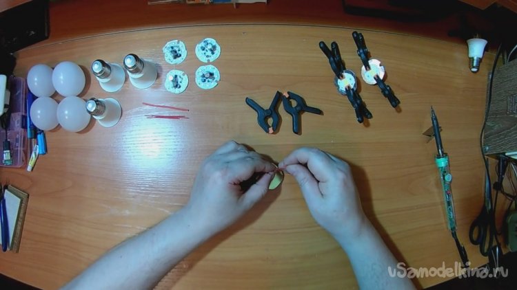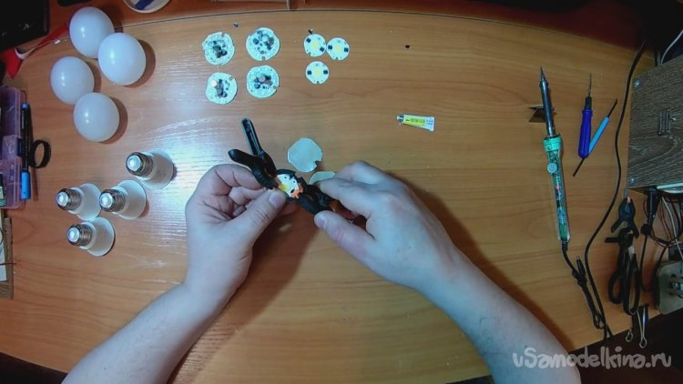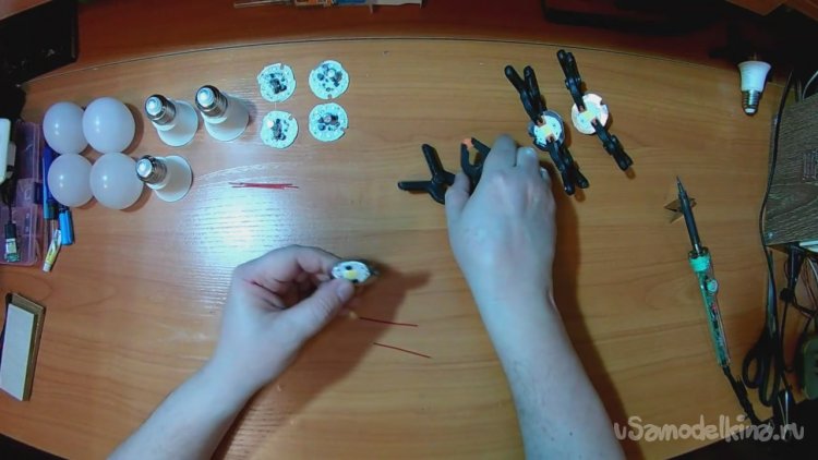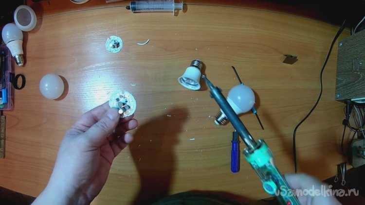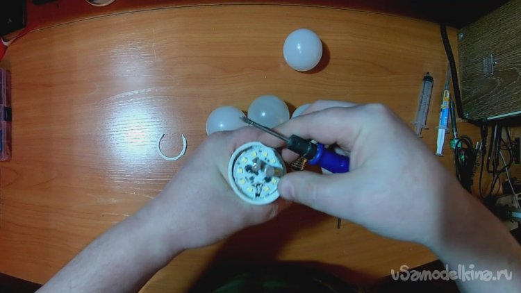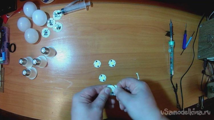 Глава четвёртая: Пайка новых светодиодных модулей к цоколю лампочки.