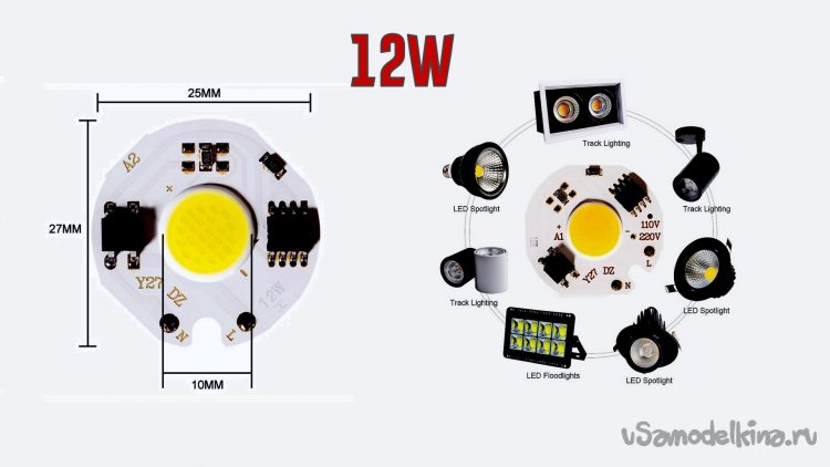 После того как они все в течении полугода благополучно сгорели, не стал их выбрасывать и увидел в другом не менее известном интернет магазине вот такие лед чипы, которые работают без драйверов. Заказывал 4 штуки 12 ватт по 0, 25 центов.