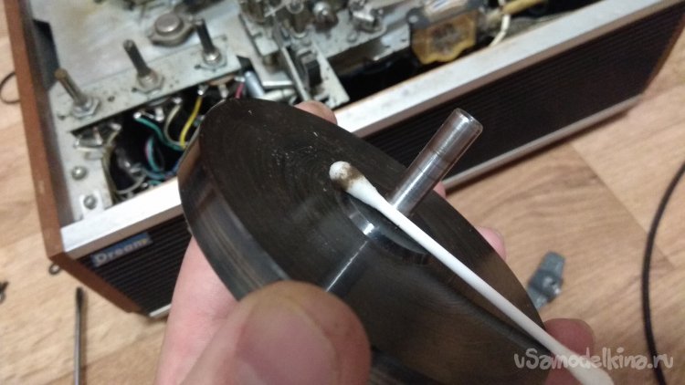 Протер ось, отмывал спиртом. Займемся маховиком. Здесь удобно воспользоваться ватными палочками: