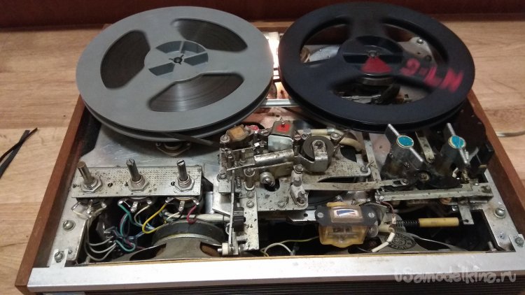 Заканчивая ремонт Маяка пришла идея восстановить и Сонату. В том, что придется его ремонтировать, сомнений не возникало, лет 20 магнитофон пылился под столом, плюс ему лет больше, чем большинству читателей сайта. За время эксплуатации Соната была немного доработана, иногда ремонтировалась, дорабатывалась кинематика, приходилось убирать лишнее или нерабочее, придумывать новые решения. Например, после долгих танцев с бубном был полностью удален узел адаптивной регулировки натяжения приемной катушки, ну вот никак он не хотел работать нормально, только вызывал лишнюю акустическую детонацию. По сути, из магнитофона получился отличный конструктор для творчества и развития инженерных навыков.