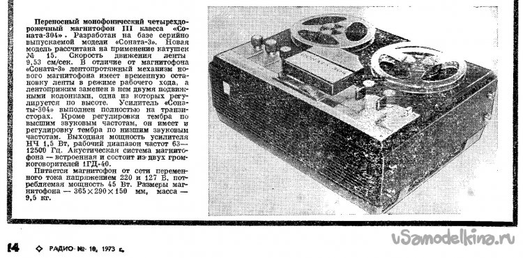 Монофонический магнитофон Соната-304 выпускался на Великолукском радиозаводе с 1973 года.