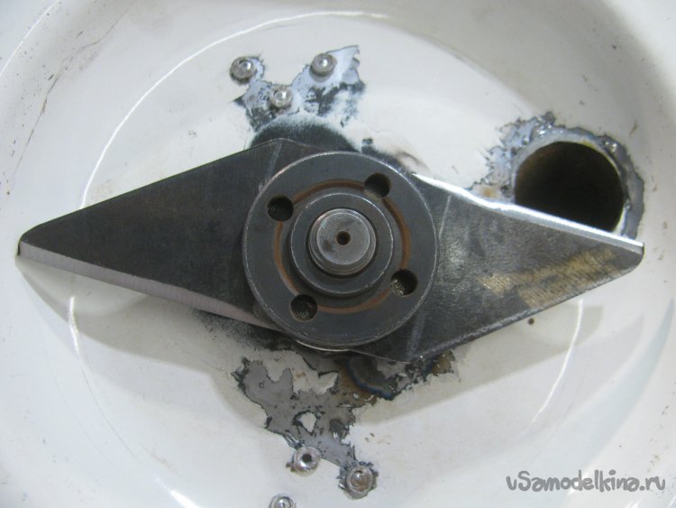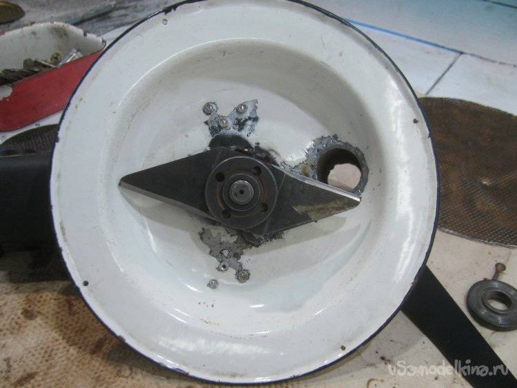 Обрезал лишний металл, а также наточил нож. Спуск сделал так, чтобы нож отбрасывал дробление зерно вниз, на сито.