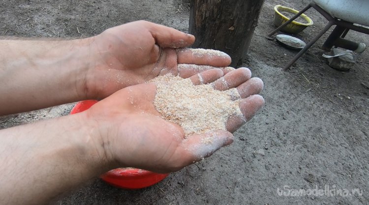 Как видно, два литра зерна перемалывается довольно эффективно, так что намолоть пару ведер крупы даже такой маленькой болгаркой не является проблемой!