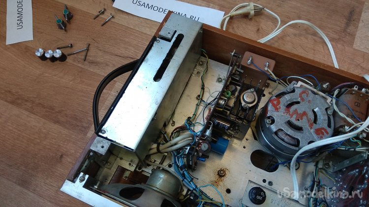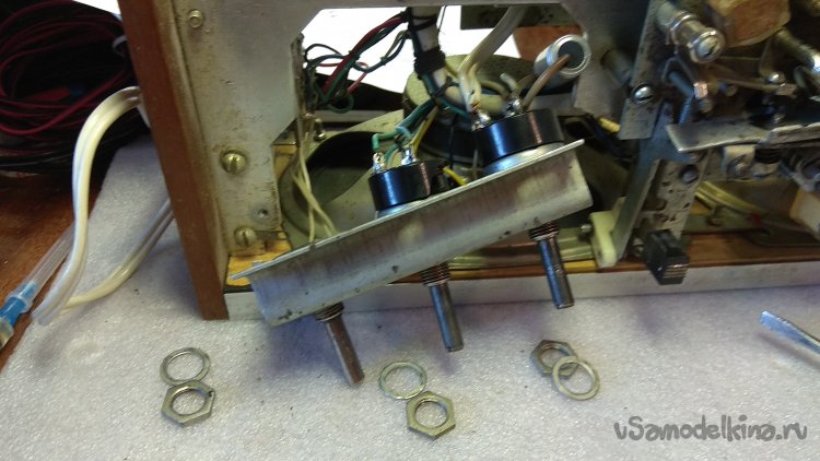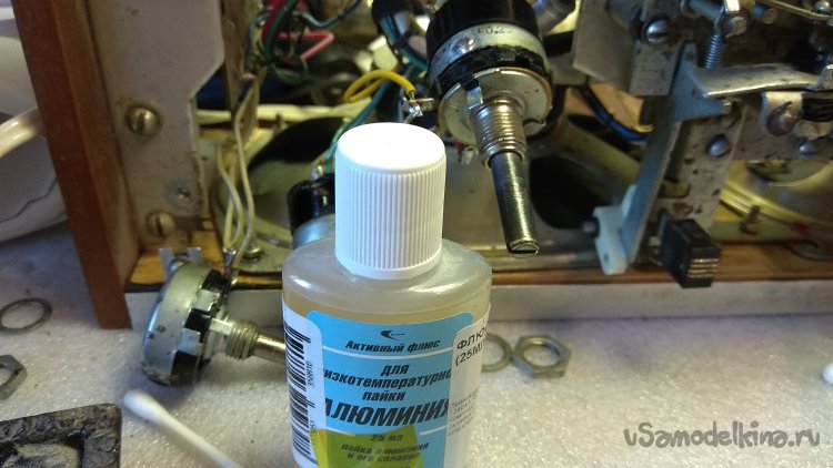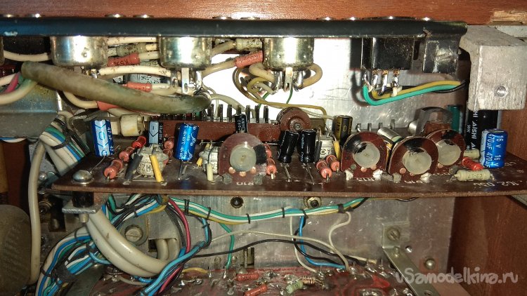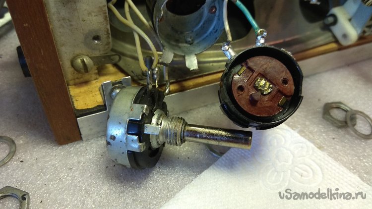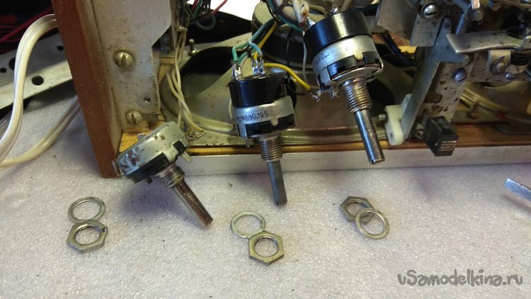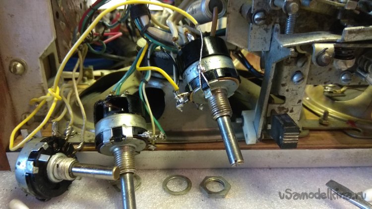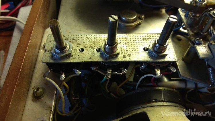 Следующий этап - чистка и смазка регуляторов громкости и тембра. Разбираем, снимаем для удобства обслуживания: