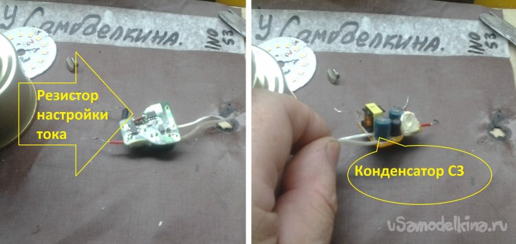 Вверху – настройка тока. А теперь займемся подбором места подключения R6 и его номинала.