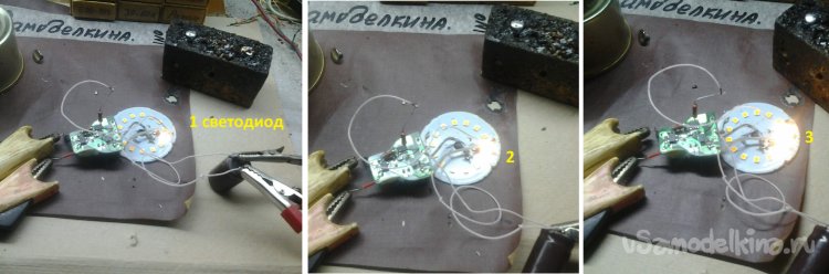Здесь 14 корпусов светодиодов. Судя по падению напряжения на них, в каждом из них 3 кристалла.