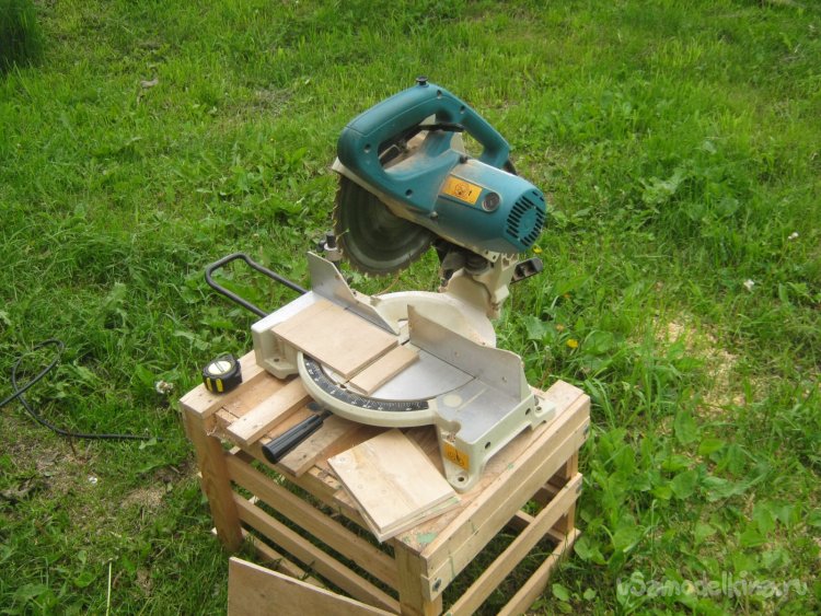 Фото 7. Подобрав в деревянном хламе обрезки 10 мм фанеры на торцевой пиле нарезал заготовок для деревянной части корпуса. Средней наждачкой снял заусенцы.