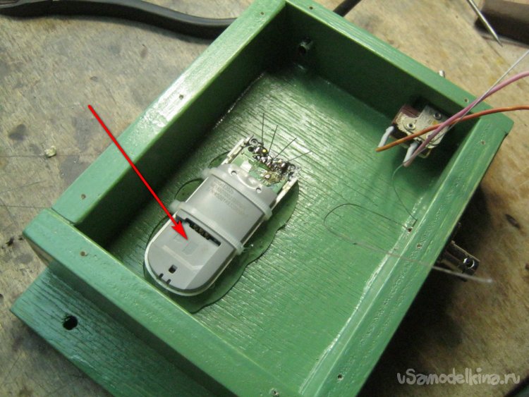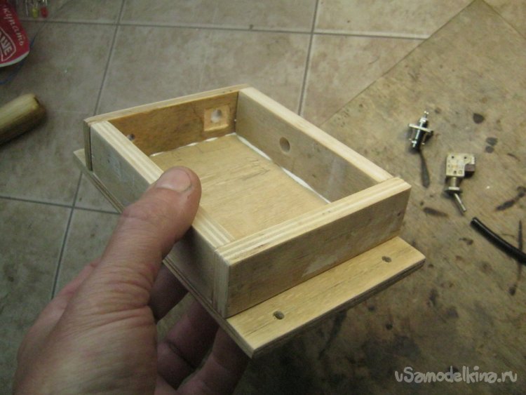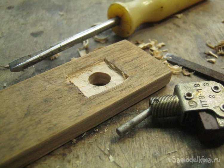 Фото 9. Толщина стенки для установки микротумблера оказалась великовата, пришлось изнутри утончать – выгрызать некрупными резцами по дереву.