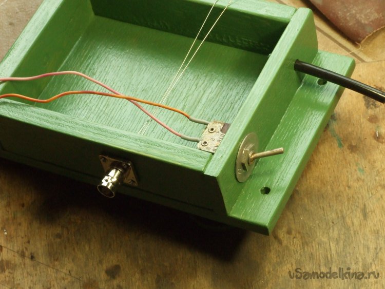 Фото 14. Соединение антенное гнездо-модем не превышает 50 мм – обычный для ВЧ коаксиальный кабель вполне можно заменить вульгарными проводами. Здесь, применил все те же нетолстые медные луженные жилы. К корпусу разъема вывод припаял – зачистил место пайки до латуни, залудил мощным паяльником, согнул конец провода небольшой петелькой, припаял. Розетку на деревянном корпусе закрепил четырьмя некрупными шурупами.