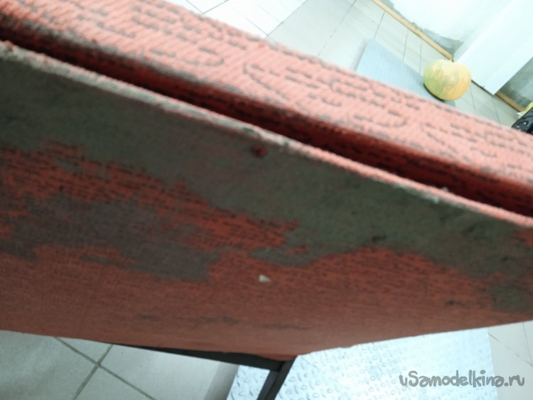 Работу, по покрытию деталей лаком, перенес в домашний спортзал. Он находится в цокольном этаже, там меньше пыли и разных летающих насекомых, в отличии с гаражом и улицей. Опыт лачения в гараже, у меня уже был (самоделка «Стол из станины от швейки»), а так как лак долго сохнущий, то, за заявленные производителем 72 часа, на сохнущую поверхность, что только не «прилетает». Еще момент, столешню лачил маленьким валиком с «щубкой» из искусственного меха, а так как лак густой, то из «шубки» вытягивало волоски, хоть предварительно, я ее и пропылесосил. Это мне потом посоветовали использовать велюровый валик, да было уже поздно. В этот раз лачил простой кисточкой, результат неплохой, единичные выпавшие щетинки убирал пинцетом. Детали покрывал лаком на 2 слоя, с просушкой по 5 дней.