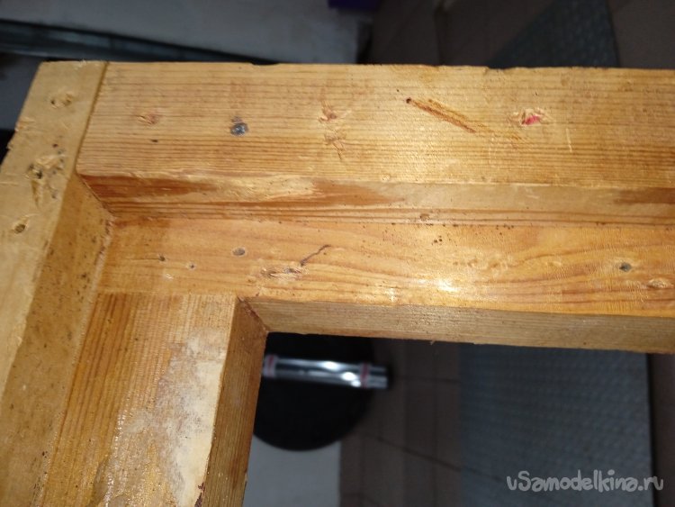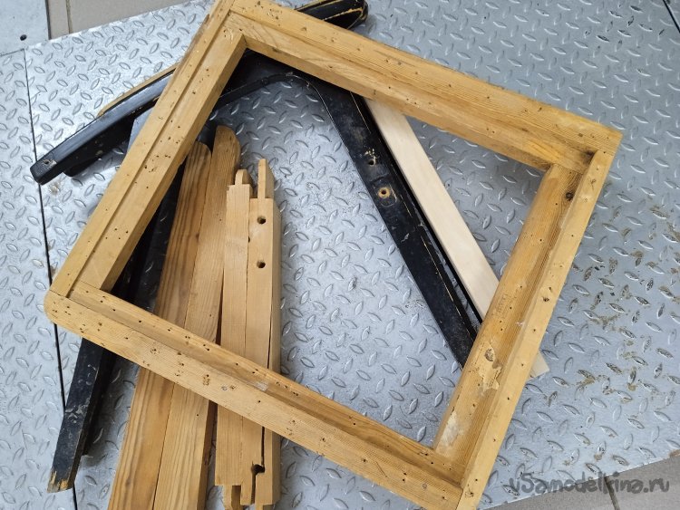 На самом деле, каркас спинки кресла оказался в плачевном состоянии. В основном все бруски были треснутыми, да и сама коробка держалась за счет наклеенной на нее ткани и пробитая, для усиления, гвоздиками. Каркас развалился сам, как только снял обивку.