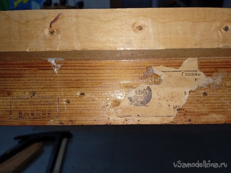 Вот нашлись остатки заводской этикетки «Глав мебель», и какой - то штамп, прочитать, толком который сначала, я не смог. Но если перевернуть фотку, то похоже на слово «ВЫДАЧА». Ваши варианты пишите в комментариях.