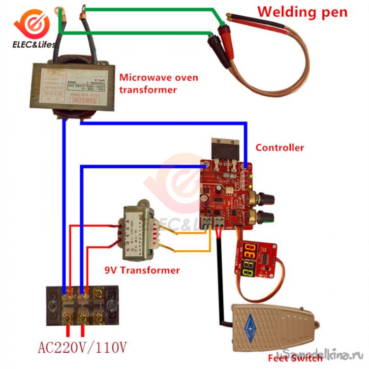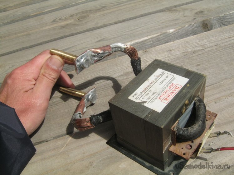 Сварочный трансформатор. Сердце прибора и его возможности. К с частью, в связи с распространением аккумуляторной электротяги в разного рода подвижных механизмах, накоплен большой опыт использования перемотанного высоковольтного трансформатора от микроволновой печи. Кажется, это его лучшее применение, даже по сравнению с исходным – завышенный ток покоя и весьма скромные для заявленной мощности габариты, делают его длительное включение расточительным и опасным. Другое дело точечная сварка – относительно дешевый, а иногда и бесплатный, трансформатор. Мощный, компактный, легко переделываемый. А что до перегрева и перерасхода, так здесь он будет работать секунды.
