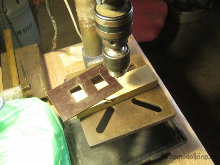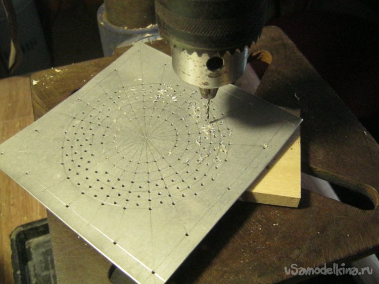 Фото 9. Сверление текстолитовых панелей. Первое – нетолстым (1,5 мм) сверлом. Для точности. Дальше, рассверливание нужным диаметром. Сверлильной станок, средние обороты, предварительное накернивание центров отверстий на стальной плите.