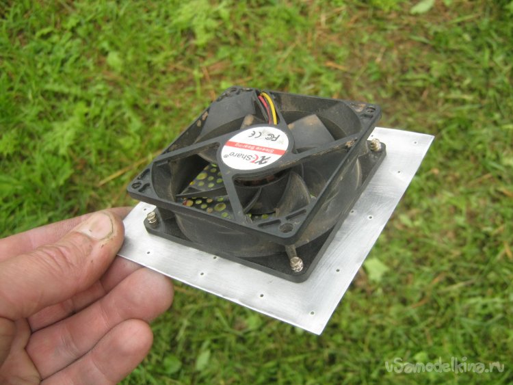 Фото 21. Вентилятор в сборе с панелью. Вид сзади. К деревянной стенке крепится мелкими гвоздиками по периметру.