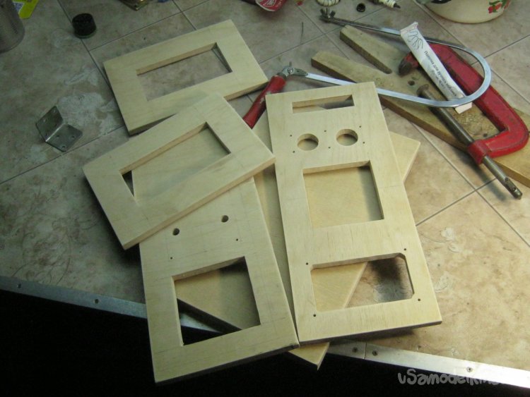 Дополнительные панели для установочных элементов сделал из нетолстого листового текстолита. Такой прием позволяет с удобством использовать для стенок корпуса материал значительной толщины (дерево, фанера).