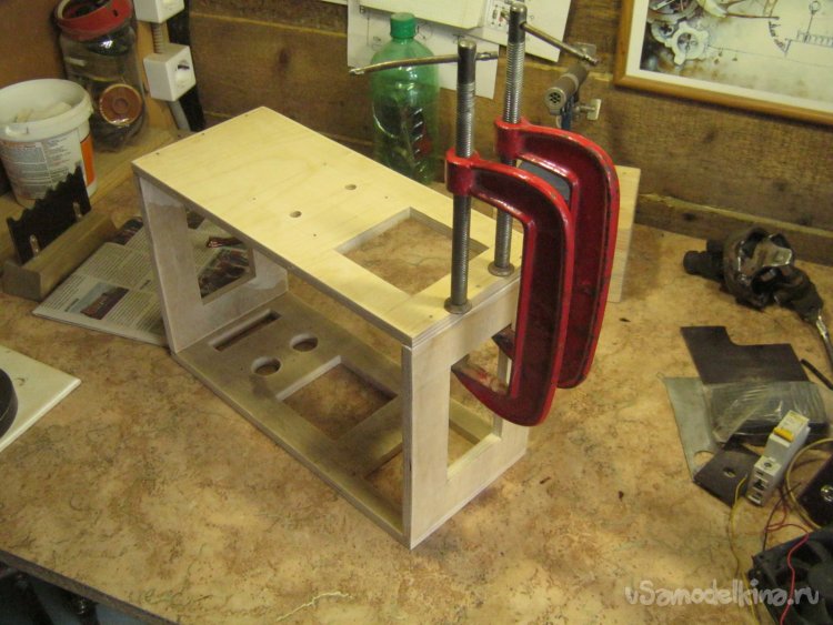 Фото 24. Несколько искривленные заготовки вынудили повозиться при сборке. Сначала скрепил боковые стенки, после высыхания клея разметил, выпилил из заготовки и установил дно.