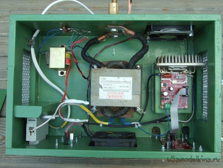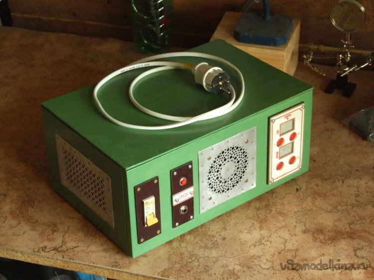 Фото 34. Блок питания-управления для точечной сварки. В сборе, планируется как столик-подставка для нахлобученного сверху некрупного рычажного прижима (электродов). Отсюда незакрепленная верхняя крышка – придавится, и клеммы сзади.