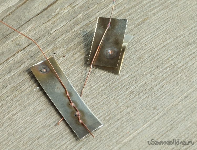 Фото 32. Сваренные образцы – нетолстый (~0,15 мм) лист нержавеющей стали, медная ~0,2 мм проволока. Значения обоих параметров средние, есть куда и уменьшать и увеличивать. Регулирование четкое и удобное, подбирать режим легко.