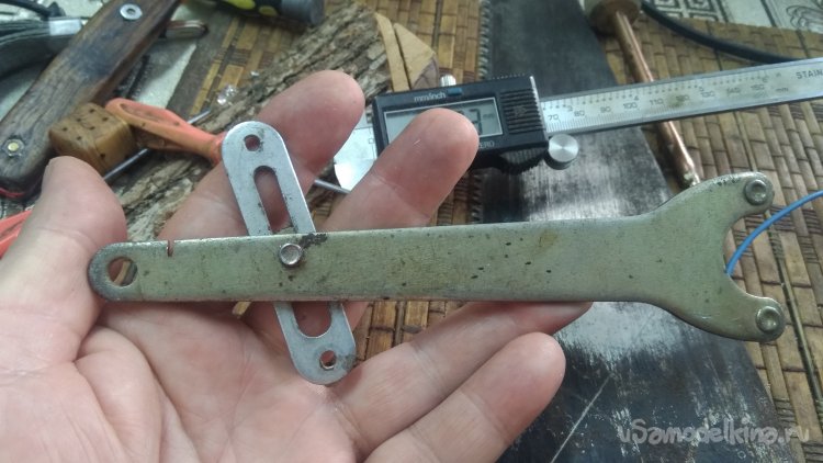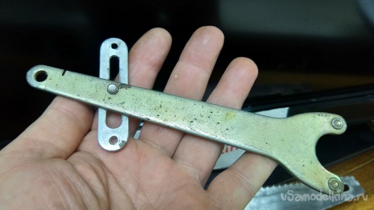 Пара железячек, я использовал ключ от болгарки в качестве разводящего элемента и детальку от замка для шкафчиков, просто подвернулось под руку.