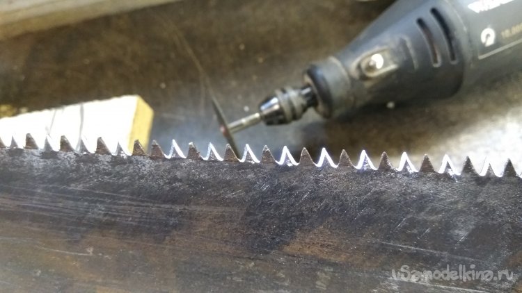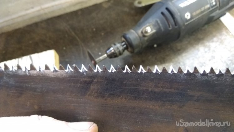 Из подручных средств разводка. Пилу качественно не сфотографировал какая она была изначально, похоже после выштамповки заточку ей не делали, но термичку она прошла, зуб напильником со свистом едва берётся.