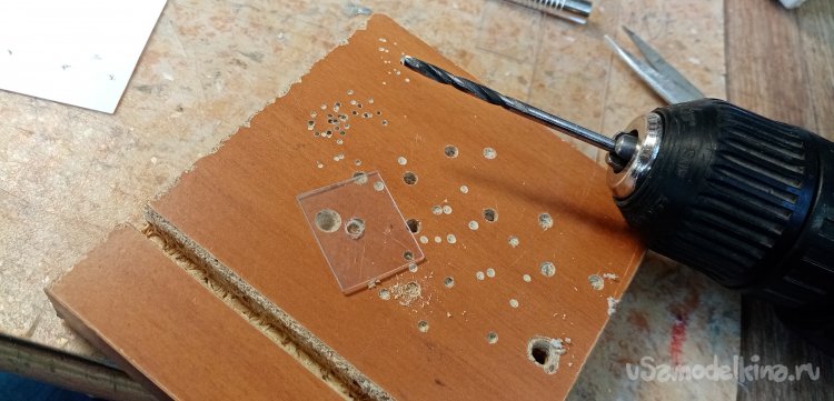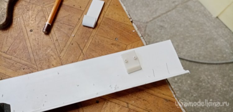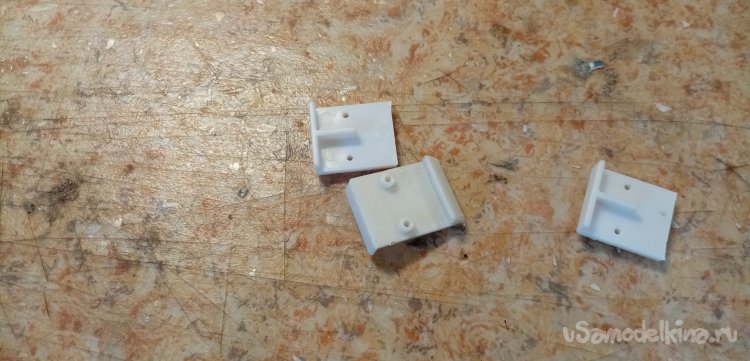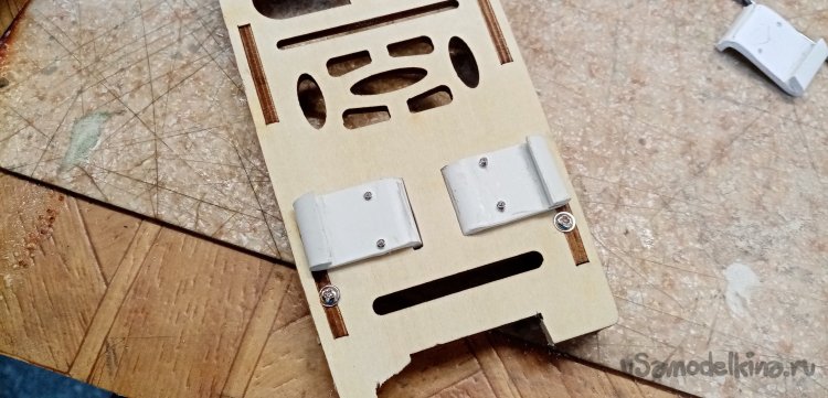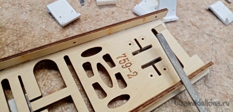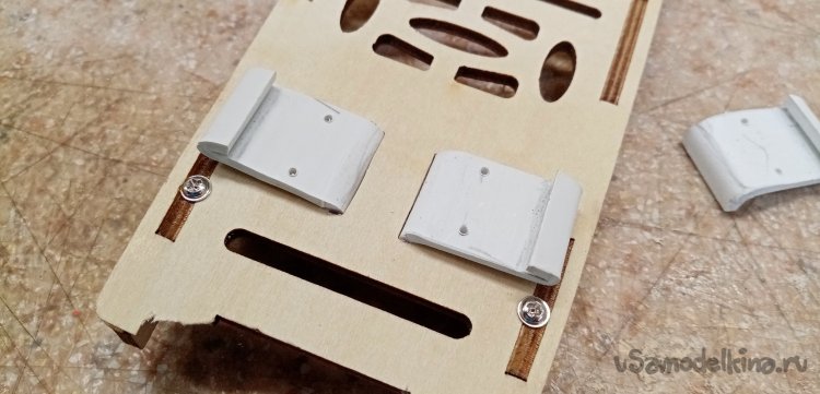Мои самодельные оказались слегка толще оригинальных. В фанерке увеличиваю надфилем отверстия фиксации защелок.