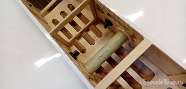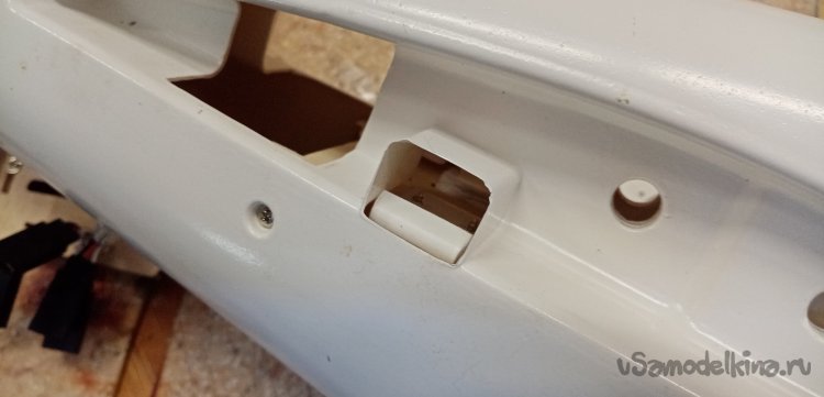 Болтиками прикрутил новые защелки на место. Площадку установил в фюзеляж.
