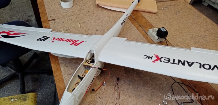Закрепил не только крылья пилотажки, но и цельно поворотный руль высоты на планере.