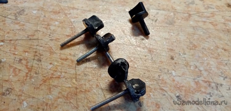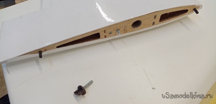 С завидной регулярностью, при замешивании порций смолы для нужд по работе с моделями остается небольшое количество. Нужно эти капельки куда-то употребить. Пришла нужда закрепить крылья пилотажной модели к фюзеляжу. Для этой цели покупались небольшие болтики с пластиковой головкой. Когда они нужны вот прямо сейчас, нашелся только один.