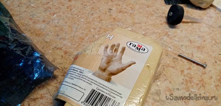 Для изготовления формы беру скульптурный пластилин «Гамма». Он достаточно жесткий, можно разминать резать.