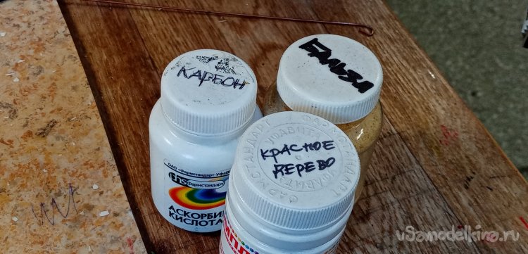 Аккуратно складываю нарезку в баночку. По мимо карбона есть еще опилки бальзы и красного дерева.