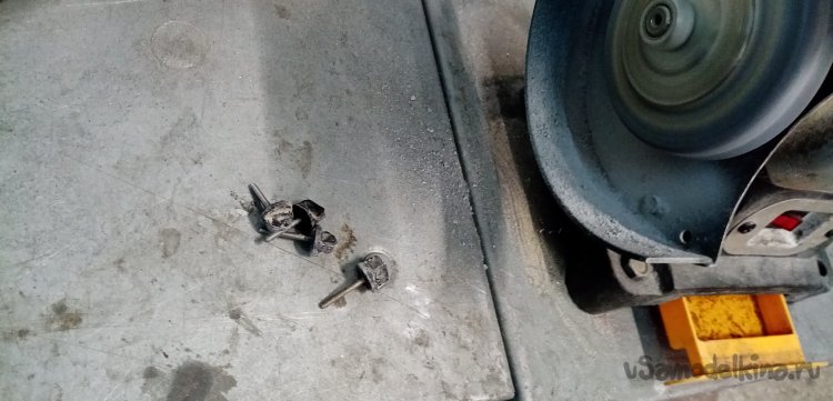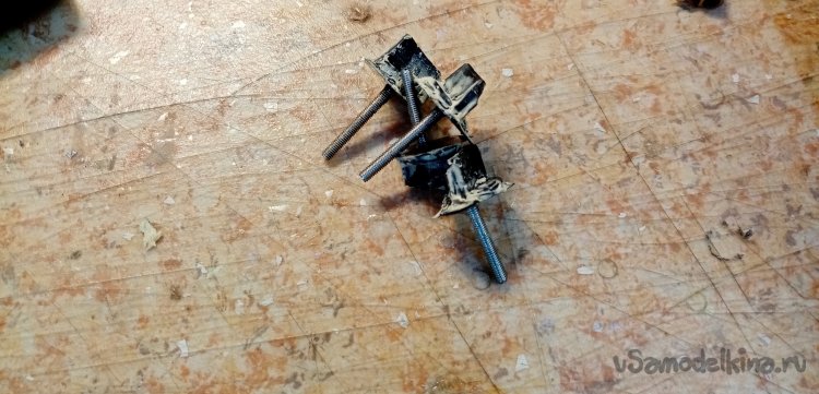 Для закладки подготовил несколько болтиков и шпилек с резьбой нужного размера. Расплющил молотком головки и кончики шпилек.