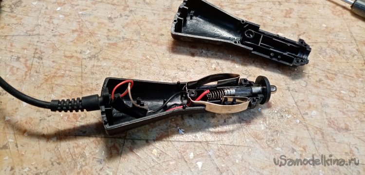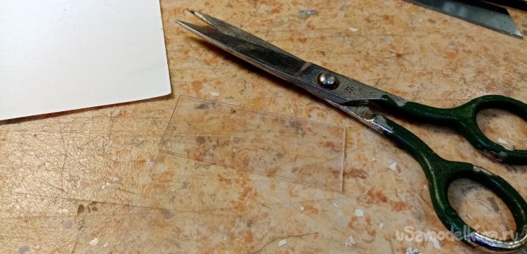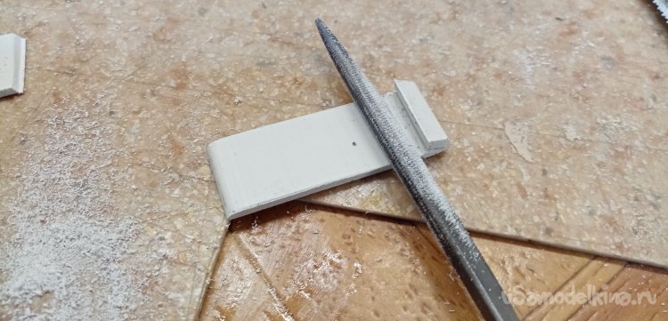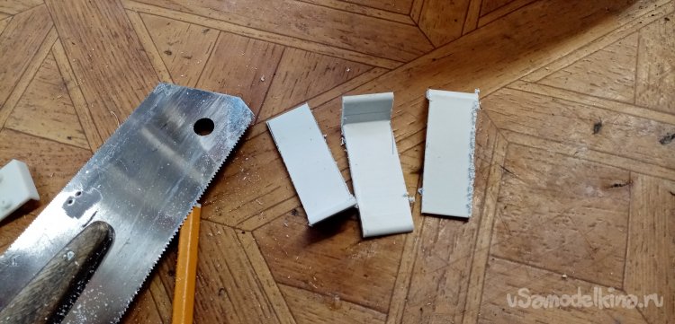 Отрезаю по образцу загнутый край пластика. Попал в размер, как по длине язычка защелки, так и по высоте.