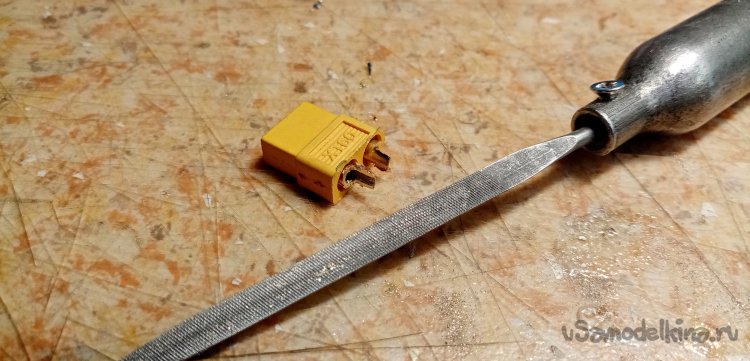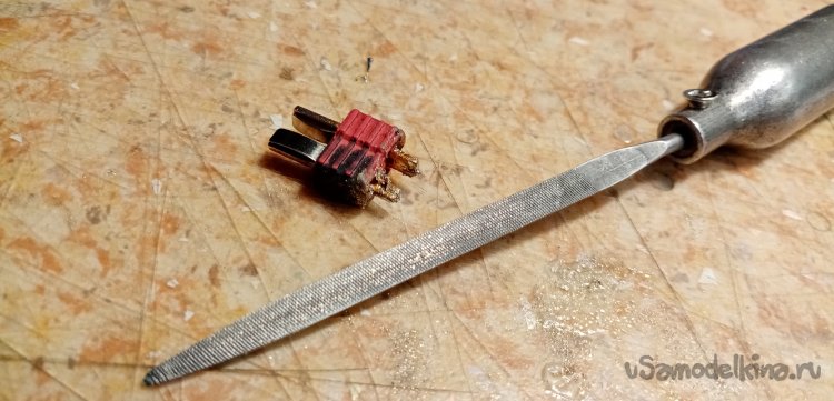 При помощи надфиля начинаю подгонять контакты разъемов для спайки.