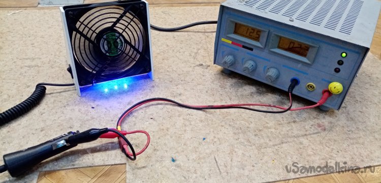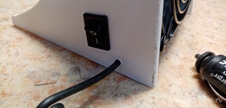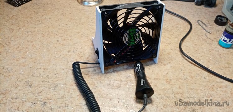 Вентилятор есть вместе с подставкой. Нужно его соединить с прикуривателем. Нашелся немного дефектный штекер. Разобрал, отремонтировал.