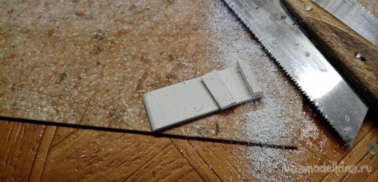 Размечаю полоски нужной ширины. Бодро распиливаю пластик обыкновенной ножовкой по дереву с мелким зубом.