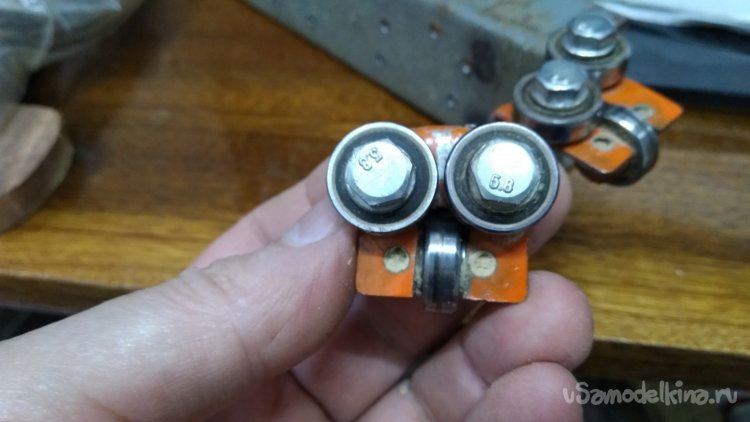 Подшипники пришлось покупать для направляющих, вместе с болтами, шайбами и гайками. Ну и уголки тоже купил, и краску. Краску я для болгарок покупал, они ведь царапаются, в смысле лак царапается и сходит. Ну и окрасил я их в оранжевый цвет после ремонта и профилактики. Чего их ремонтировать, щётки заменил, пару подшипников, смазку. Ну шнур может ещё.