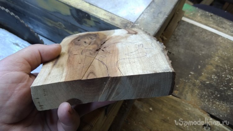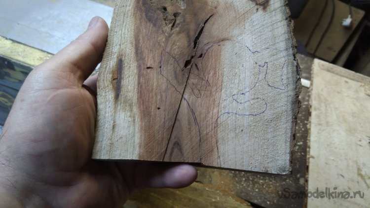 Кусочек деревяшки отпилил, набросал эскиз авторучкой. Видно хорошо, потом ведь всё сошлифуется.