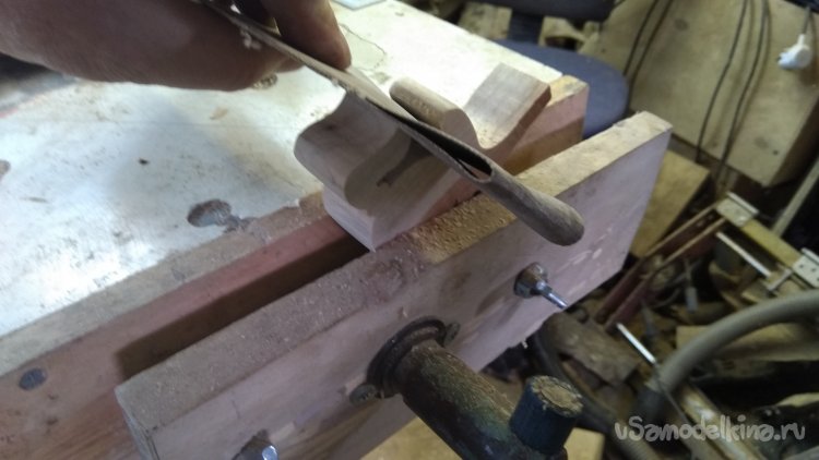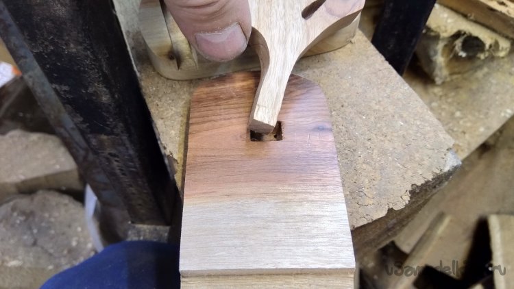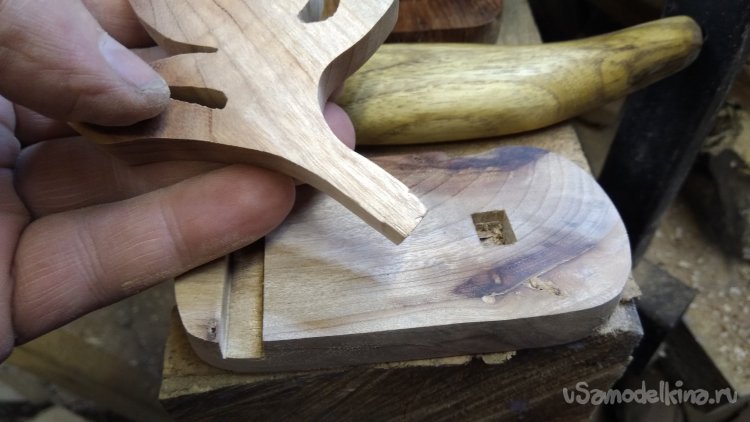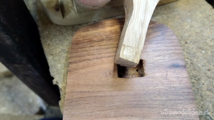 На ножке видны следы тугой посадки в гнездо, но я буду соединять на клее. Дерево мягкое, надо исключить расшатывание.