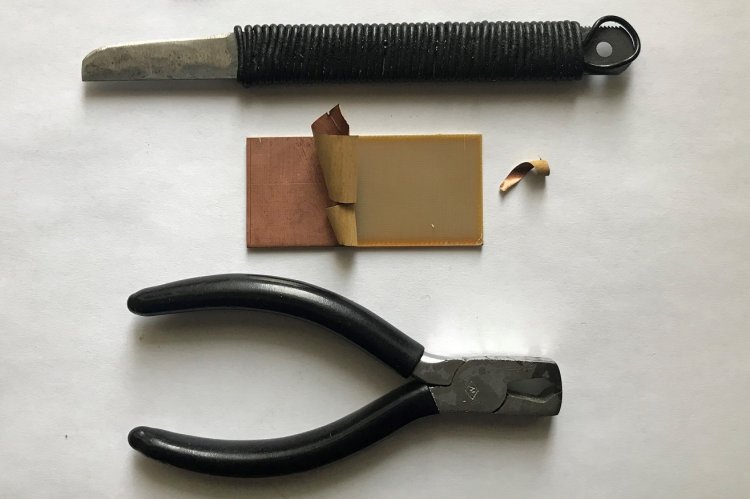 Отрезать кусок стеклотекстолита для любой печатной платы можно самодельным резаком. Заготовка прорезается сначала с одной стороны (на половину толщины стеклотекстолита), а затем – с другой стороны (до проваливания резака). После этого заготовка разламывается по линии разреза и обрабатывается напильниками.