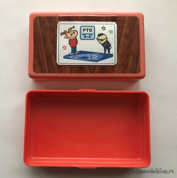 Перед приклеиванием, рисунок ФП (фальшпанели) и верхняя крышка мыльницы слегка зашкуриваются. Клеем ПВА намазывается только крышка. Через 20 … 30 минут, когда клей подсохнет, рисунок ФП прижимают к крышке и через листок бумаги слегка разглаживают.