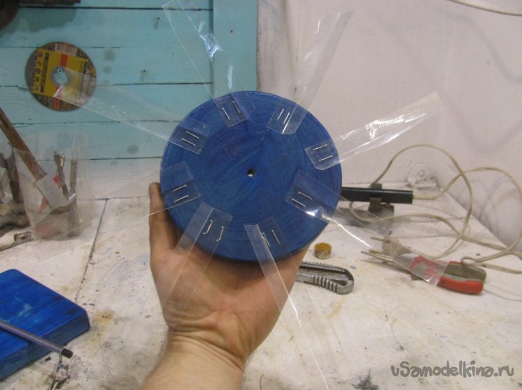 В завершении диск и деревянная основа были покрыты лаком для недопущения промокания.